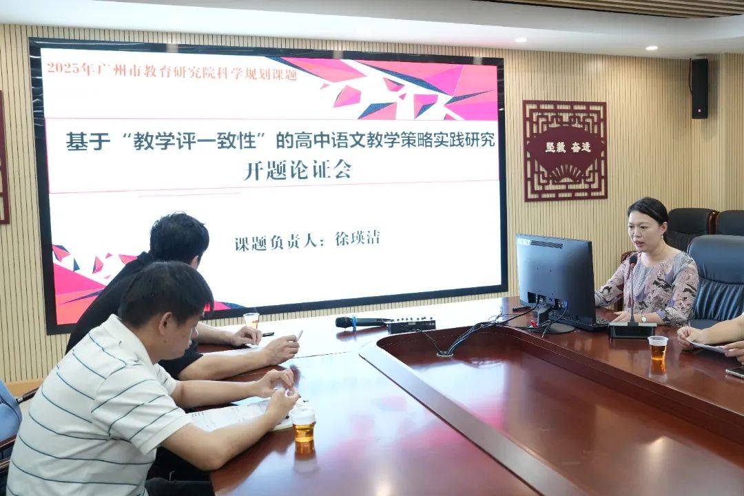 2024年10月30日,在2025年度广州市教育科学规划课题开题论证会上,广州市名教师工作室主持人徐瑛洁老师作主题为《基于“教学评一致性”的高中语文教学策略实践研究》的开题汇报。